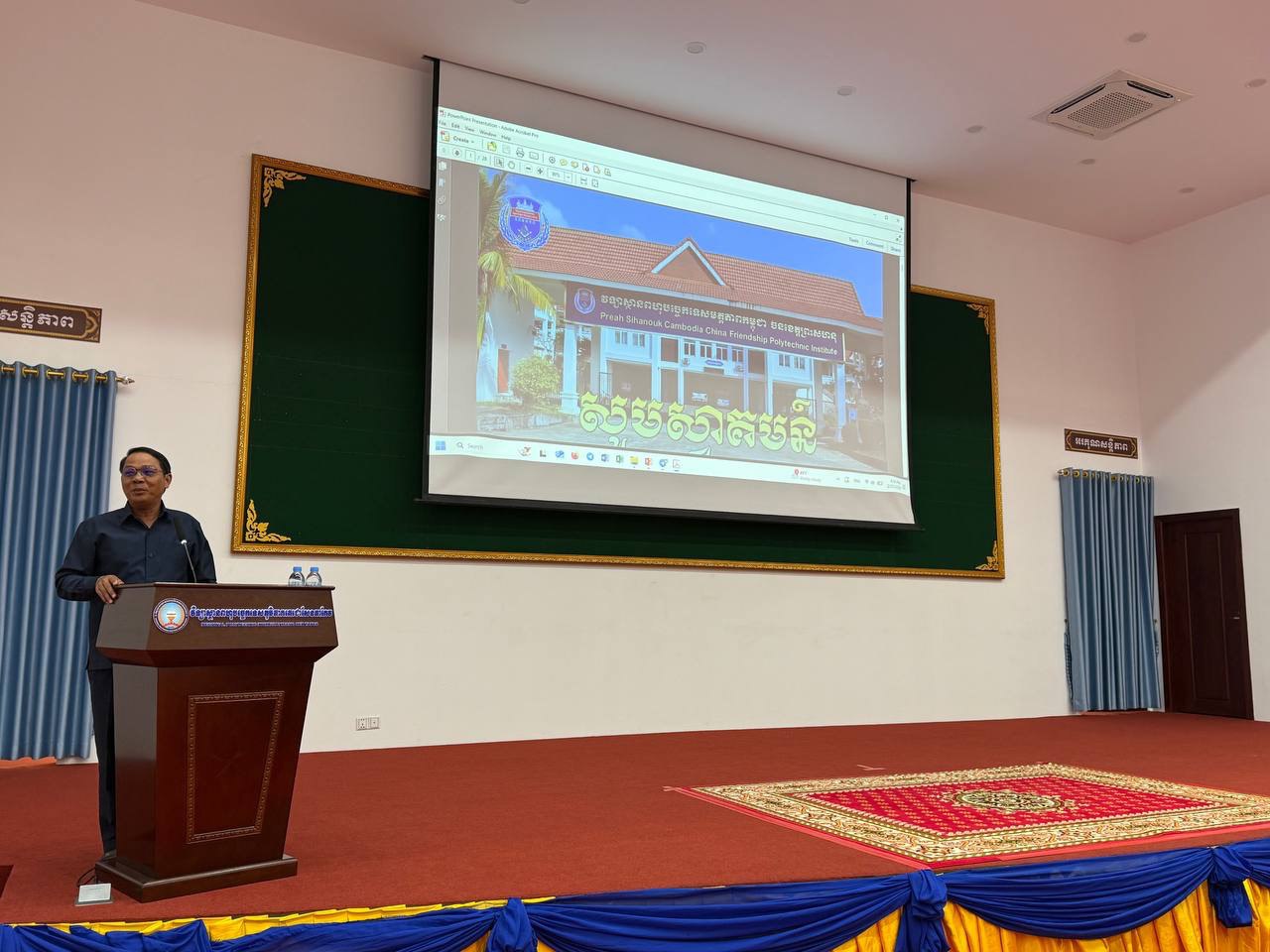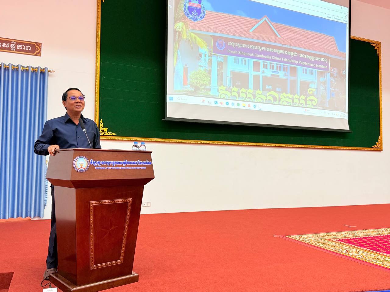 ថ្ងៃចន្ទ ៧កើត ខែផល្គុន ឆ្នាំម្សាញ់ សប្តស័ក ព.ស.២៥៦៩ ត្រូវនឹងថ្ងៃទី២៣ ខែកុម្ភៈ ឆ្នាំ២០២៦ វេលាម៉ោង ១:០០នាទី រសៀលនៅសាលប្រជុំគោកធ្លក ជាន់ទី១ អគារថ្មី នៃវិទ្យាស្ថានពហុបច្ចេកទេសភូមិភាគតេជោសែនតាកែវ បានរៀបចំសិក្ខាសាលាចែករំលែកចំណេះដឹងស្តីពី“ដំណើរការ និងប្រសិទ្ធភាពនៃការគ្រប់គ្រងគ្រឹះស្ថានអប់រំបណ្តុះបណ្តាលបច្ចេកទេស និងវិជ្ជាជីវៈ ” ក្រោមអធិបតីភាព លោក មៀច បូរិទ្ធ នាយករងវិទ្យាស្ថានពហុបច្ចេកទេសភូមិភាគតេជោសែនតាកែវ ដែលមានការអញ្ជើញចូលរួមពីសំណាក់លោកនាយករង ប្រធាន អនុប្រធានការិយាល័យ និងដេប៉ាតឺម៉ង់ គ្រូបច្ចេកទេស ជាមន្រ្តីរាជការ ព្រមទាំងសិស្សនិស្សិត។ អង្គសិក្ខាសាលានេះ មានការចូលរួមធ្វើបទបង្ហាញដោយវាគ្មិនចំនួន ៥រូប នាយករងវិទ្យាស្ថាន ចំនួន ២រូប និងបេក្ខបណ្ឌិត ចំនួន ៣រូប។ លោក ចេង យូរ៉ា នាយករងវិទ្យាស្ថានបានធ្វើបទបង្ហាញចែករំលែកស្តីពី”ការលើកកម្ពស់ការគ្រប់គ្រងការបណ្តុះបណ្តះបណ្តាលនៅគ្រឹះស្ថានបណ្តុះបណ្តាលវិជ្ជាជីវៈ Enhancement of Training Management in Vocational Training Institution”ជាចំណេះដឹងទទួលបានពីការចូលរួមវគ្គបណ្តុះបណ្តាលនៅប្រទេសជប៉ុន។ លោក ផាន់ ហេង នាយករងវិទ្យាស្ថាន បានធ្វើបទបង្ហាញស្តីពី បទបង្ហាញស្តីពី ”បរិវត្តកម្មបៃតងសម្រាប់ វ.ព.ភ.ត.ស.ត Green transformation for RPITST” ជាចំណេះដឹងទទួលបានពីការចូលរួមវគ្គបណ្តុះបណ្តាលនៅប្រទេសព្រុយណេ។ បេក្ខបណ្ឌិត ធូ សុភាព ជំនាញគ្រប់គ្រង មកពីសាកលវិទ្យាល័យខេមរៈ បានធ្វើបទបង្ហាញលទ្ធផលស្រាវជ្រាវនិក្ខេបបទស្តីពី “ដំណើការគ្រប់គ្រងគ្រឹះស្ថានអប់រំបណ្តុះបណ្តាលបច្ចេកទេស និងវិជ្ជាជីវៈ” ករណីសិក្សា៖ វិទ្យាស្ថានពហុបច្ចេកទេសភូមិភាគតេជោសែនតាកែវ។ បេក្ខបណ្ឌិត ច្រឹង ណារី ជំនាញគ្រប់គ្រង មកពីសាកលវិទ្យាល័យខេមរៈ បានធ្វើបទបង្ហាញលទ្ធផលស្រាវជ្រាវនិក្ខេបបទស្តីពី “ប្រសិទ្ធគ្រប់គ្រងគ្រឹះស្ថានអប់រំបណ្តុះបណ្តាលបច្ចេកទេស និងវិជ្ជាជីវៈ” ករណីសិក្សា៖ វិទ្យាស្ថានជាតិបណ្តុះបណ្តាលបច្ចេកទេសតេជោសែន។ បេក្ខបណ្ឌិត ប៊ូ សំអាត ជំនាញគ្រប់គ្រង មកពីសាកលវិទ្យាល័យខេមរៈ បានធ្វើបទបង្ហាញស្តីពីលទ្ធផលស្រាវជ្រាវនិក្ខេបបទស្តីពី “ដំណើការនៃការគ្រប់គ្រងគ្រឹះស្ថានអប់រំបណ្តុះបណ្តាលបច្ចេកទេស និងវិជ្ជាជីវៈ ”ករណីសិក្សា៖ វិទ្យាស្ថានពហុបច្ចេកទេសមិត្តភាពកម្ពុជា-ចិន ខេត្តព្រះសីហនុ។ អង្គសិក្ខាសាលានេះ ត្រូវបានសម្របសម្រួលដោយលោកបណ្ឌិត សុន ឧត្តម និងលោកបណ្ឌិត រស់ រ៉ាវុធ ដែលជាសាស្រ្តាចារ្យនៃសាកលវិទ្យាល័យខេមរៈ៕